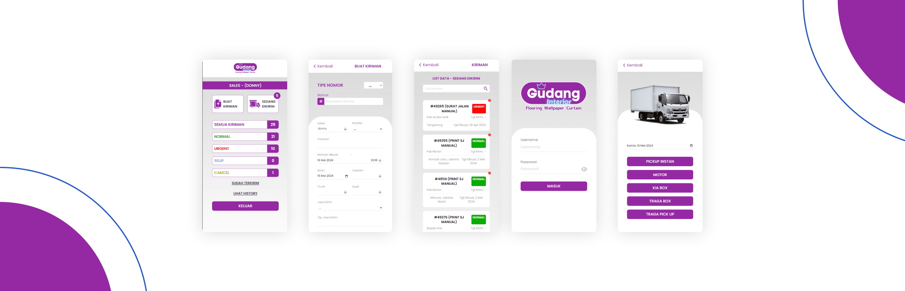Gudang System adalah sebuah aplikasi manajemen logistik yang dirancang untuk mengoptimalkan proses pergudangan dan pengiriman. Aplikasi ini dirancang dengan mempertimbangkan kebutuhan berbagai peran dalam operasi logistik, termasuk admin, sales, pengirim, dan supir, untuk memastikan alur kerja yang efisien dan terkoordinasi. Berikut adalah deskripsi peran dan fungsionalitas utama dari setiap peran dalam aplikasi Gudang System: